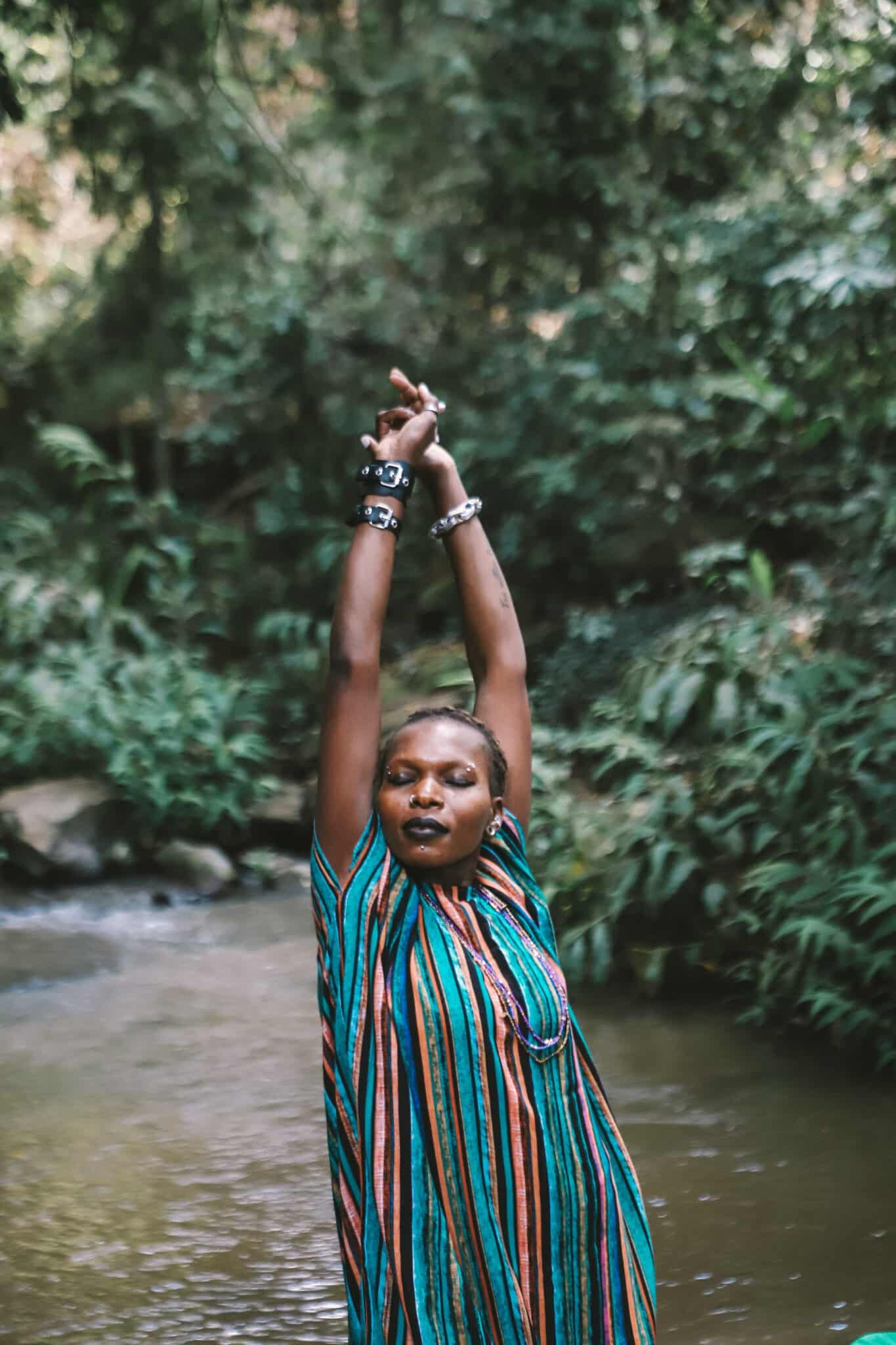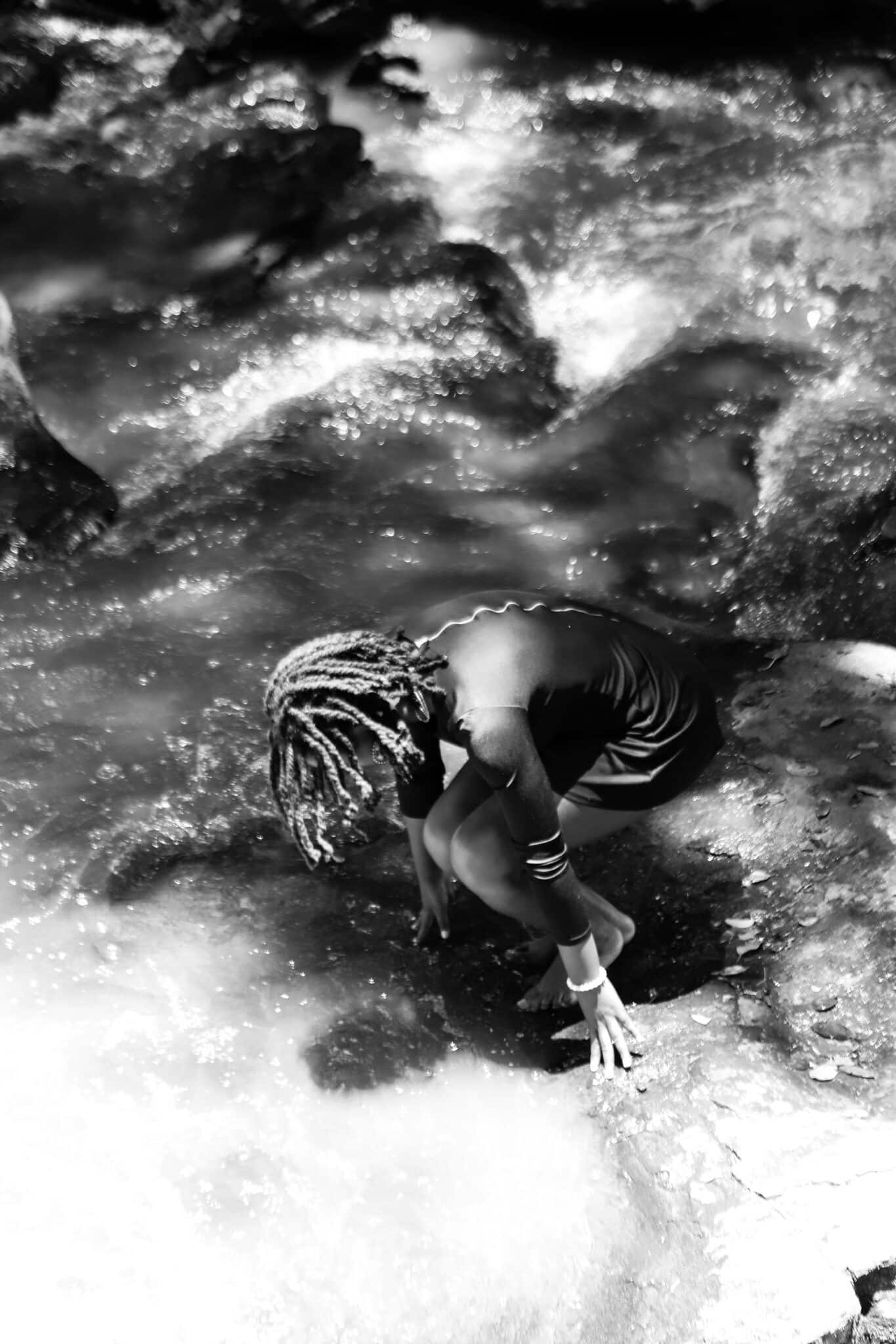 Yogi and therapist A soaking in the natural elements. “Nature is a big part of the work I do, a beautiful and free means of seeking healing in community.”